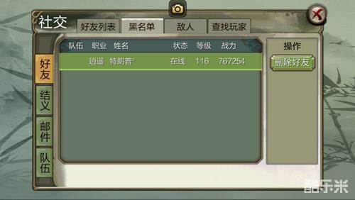 在黑名单中选中该玩家,点击右侧的【删除好友】,即可将其从黑名单中移除。