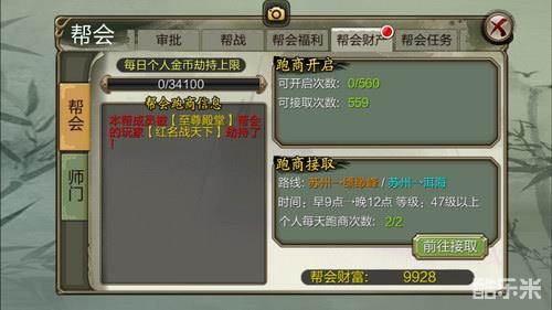 达到2级帮会后,可开启帮会跑商,跑商只能帮主开启。不同等级帮会,每周跑商次数有限。帮会成员每日可完成两次跑商任务。跑商分为安全路线和危险路线,危险路线会途径雁门关和雪原两个不加恶名的场景,不属于同一个帮会的成员可在这两个场景劫商,每个人每日的金币劫持有上限。被劫持的商会受到金币的损失,被劫持的时候有免费次数的原地起。一般情况大家都喜欢跑危险路线,因为相比之下,此路线的收益会更高。至于哪条路线更合适你,还需要量力而行。跑商还会为帮会带来财富值,财富值可用来开启帮会任务和生产腰带。每周日跑商金币翻倍。