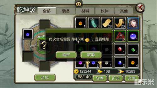 2.在乾坤袋功能中,将多颗同类型同级的宝石放入乾坤袋,每3颗可以合成一颗高1级的宝石。比如说,放入10颗3级生命宝石,可以选择合成得到3颗4级生命宝石,并返还1颗3级生命宝石。