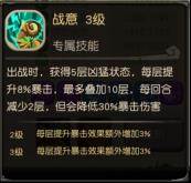 战意,出战时获得5层凶猛状态,每层提升一定暴击率,每回合减少两层。同时角斗鸟的暴击伤害减少30%。