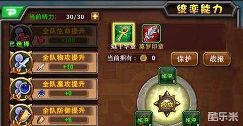 1统率抢夺任务每次消耗2点精力,玩家可以利用抢夺来的碎片合成经验提升队伍的某一项整体属性。统率能力一共提供了:全队生命提升、全队物攻提升、全队魔攻提升、全队防御提升、全队速度提升五个提升项目供玩家选择