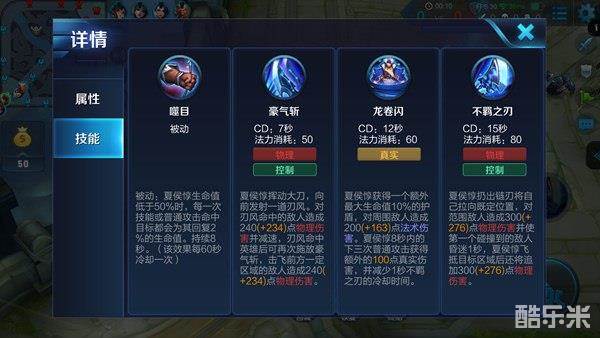 解析:一技能是夏侯惇的主要控制技能,在使用时一定要注意命中敌方英雄单位,以此来触发一技能的二段释放。其次夏侯惇一技能二段是有明显前摇的,所以在释放时一定要学会预判目标的位置。