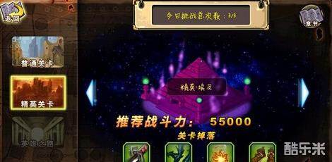 图1是精英关卡中一个比较初级的精英关卡,很充分的给大家一个熟悉精英关卡的打法这个关卡的推荐战斗力是55000玩家们千万别太当回事,只要你的阵型好45000-50000完全没问题小编亲测。