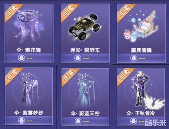 本期我们为大家准备了很多非卖,新品伞系列坐骑伞·魅花舞、迷彩·越野车、麋鹿雪橇,伞系列翅膀伞·紫雾梦纱、伞·蔚蓝天空,非卖服饰伞·千秋骨冷、伞·独望如故、罗梓碎熙等其他热门道具!
