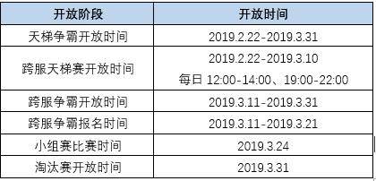 2月版本期间,将开启新赛季天梯争霸,天梯时间安排如下: