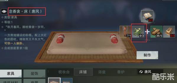 《楚留香》宅邸哪件家具利润最高 唐风床利润价格介绍