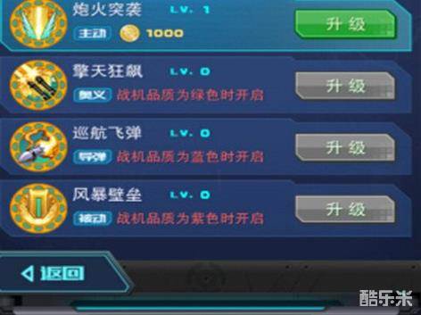 技能等级可以通过消耗金币进行升级,等级越高消耗的金币越多,威力也就越大,技能等级不能超过当前战机的等级。