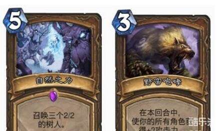 自然之力2016.4.25动刀,从6费召唤3个回合结束会自动死亡的冲锋树人,改成5费仅仅3个树人,失去冲锋的树人,再也不能配合咆哮打出空场14点的斩杀,甚至是激活双咆哮22点斩杀,从此再无咆哮德。有的也仅仅是超生德而已。和奴隶战的性质类似,没有空场斩杀能力了,差不多就这么毁了一套牌。