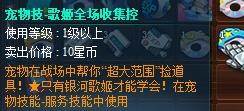 宠物技歌姬全场收集控的主要作用是:宠物在战场中帮你超大范围捡道具,只有银河歌姬才能学会,在宠物技能服务技能中使用。