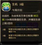 技能评价:由于生机效果只能持续两回合,要想让锦羽兽带来【无限生机】,就必须要提升其怒气的获得速度,因此推荐配合人物守护者或者是携带振奋技能,不然就是一直磕怒气药。