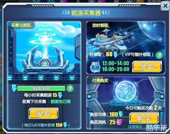 VIP可领取额外能源:VIP1-3级领取120能源;VIP4-5级领取150能源;VIP6级领取180能源。