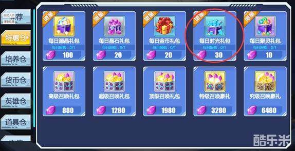 游戏主页右下角的【商城】系统,在特惠仓找到【每日时光礼包】,礼包内含60能源和其他道具,一日仅限购买一次。
