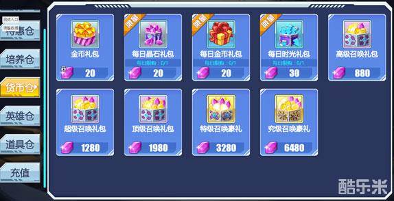 2.点开货币仓,会看到琳琅满目的礼包。其中,含有金币的礼包有:每日金币礼包、高级召唤礼包、超级召唤礼包、顶级召唤力保、特级召唤礼包和究极召唤豪礼。