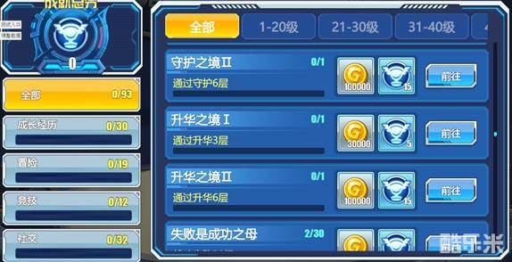 点开《以太之光》游戏主页面左侧的【成就】通道,有许许多多的成就说明和成就奖励。如:试炼之境Ⅰ、升华之境Ⅰ、镜像之境Ⅰ、明星伯乐Ⅰ、明星伯乐Ⅱ、头像框收藏者Ⅰ等等,达成成就即可获得高额的金币奖励。