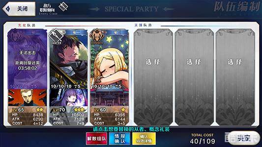 「疲劳」状态会根据所需时间逐渐恢复,但是等待恢复的期间将无法继续挑战后续的阶层。此时可以将未处于「疲劳」状态的从者编入队伍,即可继续挑战!