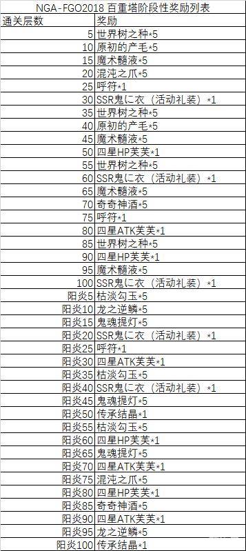 FGO国服百重塔活动踏破奖励一览。国服于最近开启了百重塔活动,很多小伙伴都想知道这个活动的奖励怎么样,接下来就让我们一起来看一看百重塔的活动奖励吧。