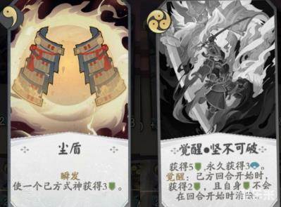 获得5点护盾,永久获得3点伤害。觉醒;己方回合开始时,获得2点护盾,且自身护盾不会再回合开始时清除。