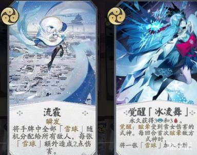 永久获得3点伤害和3点生命。觉醒:眩晕受到雪女伤害的式神。每回合首次眩晕敌方式神时,将一张雪球加入手牌。