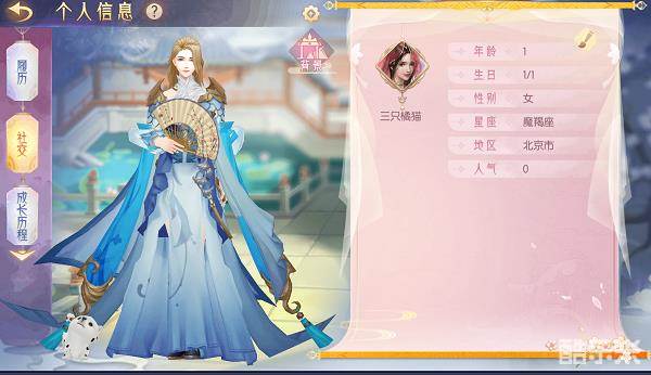 在个人社交界面可以看到角色的个人信息,包括年龄、性别、星座等,通过这些信息可以帮助小主们在凤歌中找到志趣相投的朋友哦