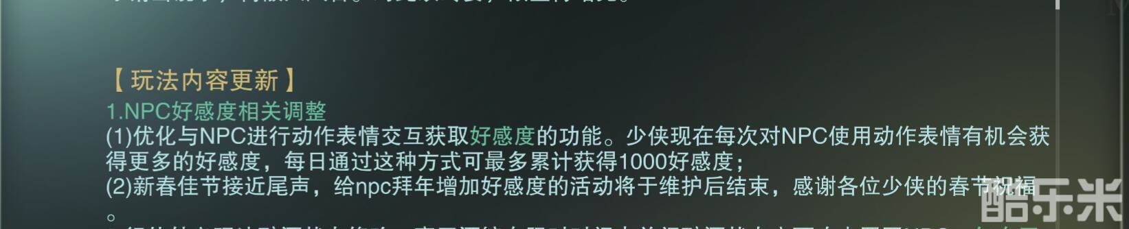 更新之后拜年动作无法获得好感,每天根据动作活动的好感上限为1000。【一般动作第二次只能获得一点好感,两到三次后无法获得好感。减好感的动作也是一样的。】