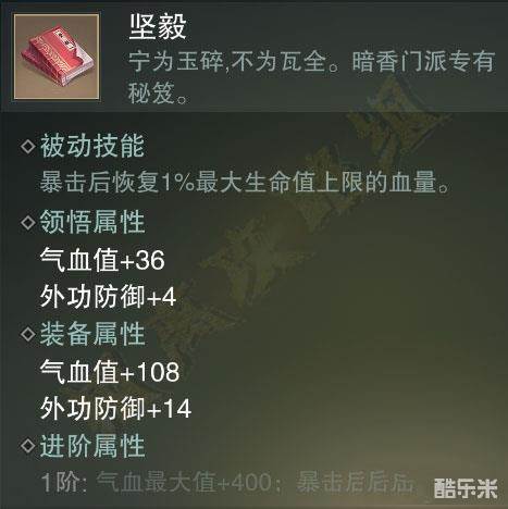 以上便是坚毅秘籍的获得和属性技能了,看的出来似乎能增加玩家的防御和血量,增强保命。好了,以上攻略希望能帮助到大家,最后祝大家在游戏中玩得愉快。