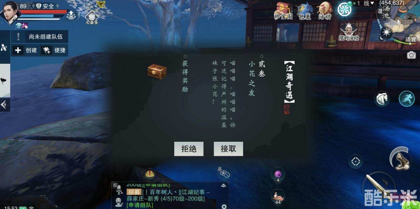 任务概述:路过触发,二狗之友和小花之友奇遇只能二选一,这个跟主线里你在严州主线任务的选择相关的,选择救了小花,就只能触发小花之友的奇遇了,反之则为二狗之友。