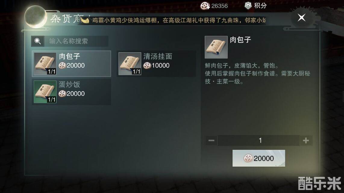 《楚留香》手游肉包子怎么获得 肉包子食谱购买商人坐标