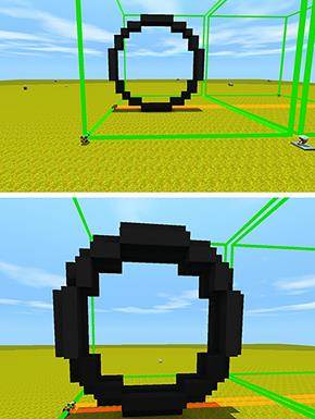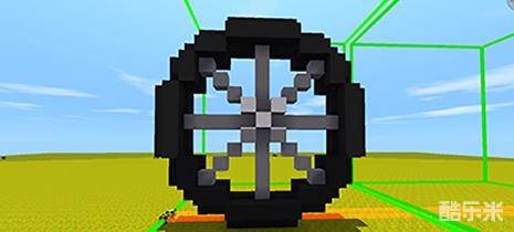 第一步:在一个微缩区域中间,用黑色做一个15格的圆,然后在这个圆的俩边内缩一格,做为轮胎。
