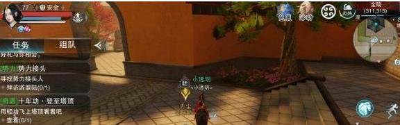 任务概览:点小和尚接任务,他会叫你飞上旁边的楼顶,不是自动寻路。