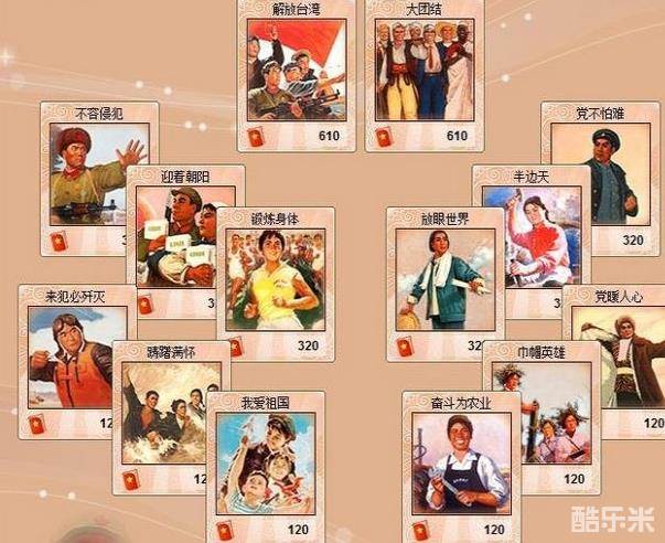怀旧卡片有光辉旧海报。这套卡难度不高。是怀旧系列。怀念解放台湾,工农劳动的卡片,就连送的qq秀也是红军装。