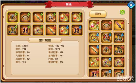 玩家可以把多余的装备放到星座中给自己增加属性喔!