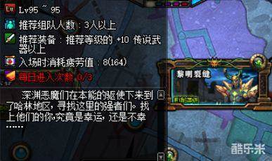在角色到达95级完成所有主线任务之后,完成外传任务“地区出现的异次元裂缝”后就可以进入,每天入场次数是3次,并且每次需要消耗20个诞生之芽,奖励是十分重要的,可以获得异形结晶和异形碎片,大家都知道这两个材料是制作哈林史诗的,另外,BOSS有一定的几率掉落95级哈林史诗,对于毕业大号来说也就相当于一个狗眼,所以每天3次的黎明裂缝还是去碰碰运气