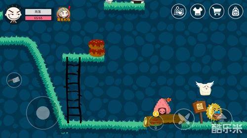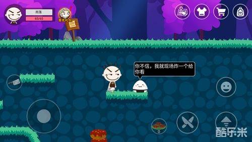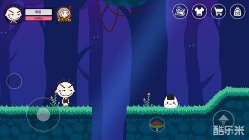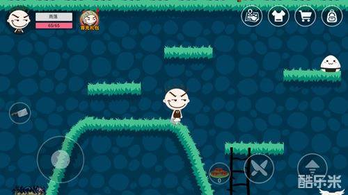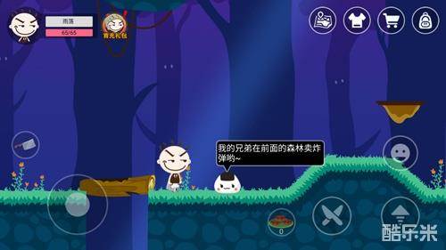 2.要去下面,首先我们要在第二个地区中炸掉木桥。炸掉木桥需要炸弹,我们跟木桥旁边的饭团对话,知道它的兄弟在前面卖炸弹,所以我们向右去寻找它的兄弟。