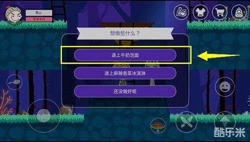 1.在锯齿森林里把牛奶泡面给刀叉,它会吃掉左边荆棘,打开通向洞穴的道路。