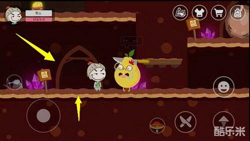 2.向左走进入水晶通道,一直向左走直到遇到头上插刀的柚子,头上插刀的柚子旁边的洞口就是青瓜回廊的入口。
