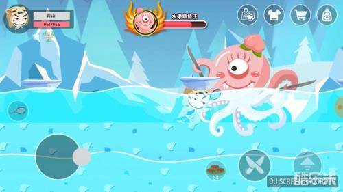 1.由于水果章鱼王在水下,打水果章鱼王要吃皮皮虾蛋黄派,避免水下淹死。攻打章鱼王时可以利用悬浮台阶上下跳跃躲避伤害,还可以吃背包里各种食谱做出来的加成buff,或者直接用饭团炸弹轰炸。