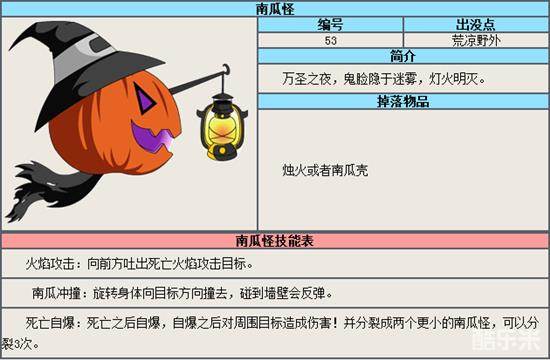 首先我们先来看一下南瓜怪的技能表:
