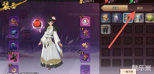 2、打开装备界面之后,我们需要点击右上角的【装备】分栏。