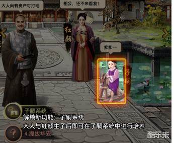 首先需要玩家解锁子嗣功能,而解锁该功能需要传唤红颜,传唤红颜之后如果生了孩子,这样就会自动解锁该功能了。