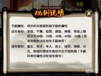 子嗣有很多身份,而身份跟母亲的亲密度有关,所以要想获得等级高的身份,一定要提高其母亲的亲密度。