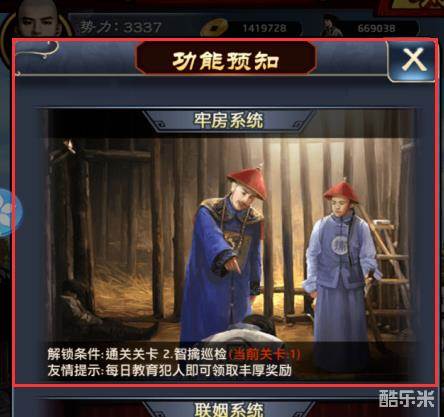 首先玩家要了解【牢房】的解锁条件,在游戏中需要玩家通关关卡2:智擒巡检这一关卡,这样才能解锁牢房功能。