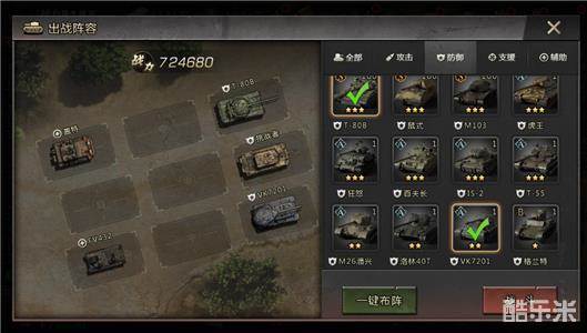 优点:5辆战车都有百分比减少敌方防御的技能。黄鼠狼+鼠式+ 69式进场即可减少敌方50%以上的防御,加上洛林40T +M1A2的技能减甲,直接让敌方前排裸奔,快速消灭敌方前排。前排肉盾倒下,后面的脆皮还不是砧板上的鱼肉