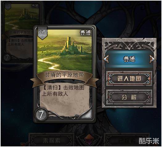 在拥有了地图卡之后,我们就能够进入该地图卡进行探索了,探索完毕的地图卡会变成“已探索”状态,“已探索”的地图卡会有相应的资源加成,只要放进“采集”界面里就能够提供大量的资源了。