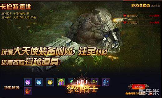卡伦特遗址是《奇迹重生:梦幻骑士》时下最热门的冒险区域。虽然我们每天能够进入的时间有限,但是每个玩家都会在有限的时间里尽可能探索其中,渴望获得更多的收获!卡伦特遗址中的怪物会为玩家掉落各种“大天使装备”所需的进阶材料。而且两位BOSS不但能够掉落各种极品装备,还会掉落一些更稀有的进阶材料哦!如果你能在有限的时间里击败它们,那么你将带走一份最丰厚的收获!
