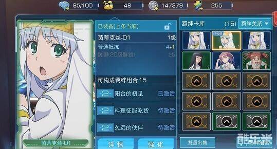 另外,羁绊卡是可以强化的,羁绊卡的强化是通过用其他的羁绊卡强化的,比方说你有一张茵蒂克丝01的羁绊卡,你可以用其他的随便什么羁绊卡来强化这张羁绊卡。
