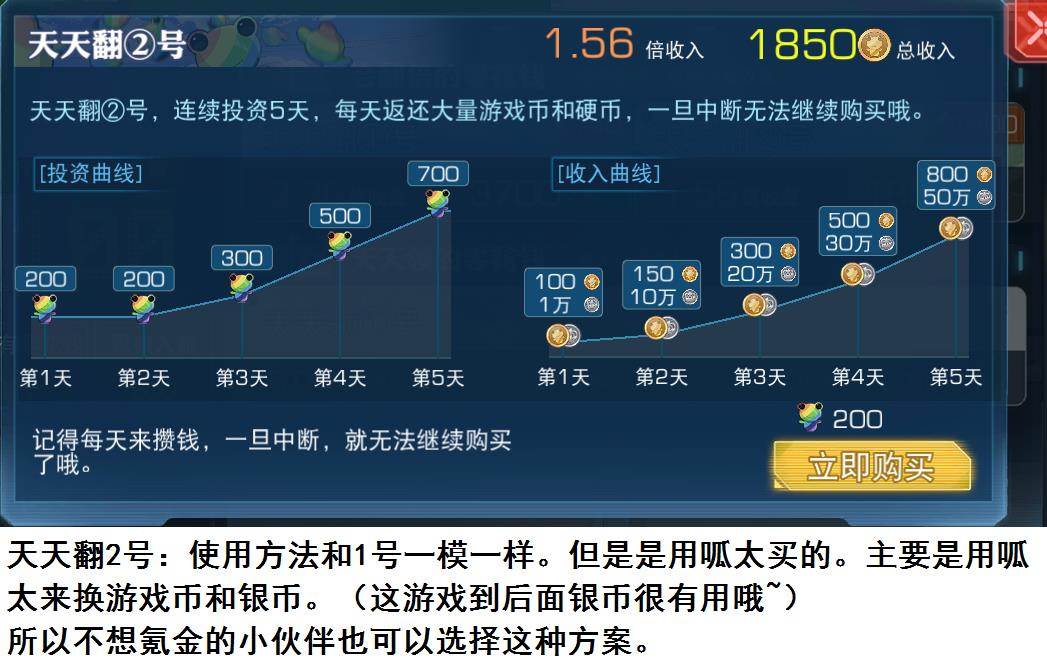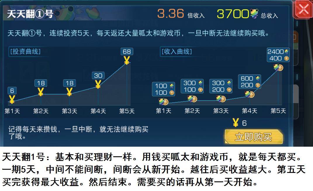 先来说一下天天翻1号:注意第一种天天翻等于和理财差不多。每天都要买。然后一期给你多少东西这样。中间断掉了就重头开始了。