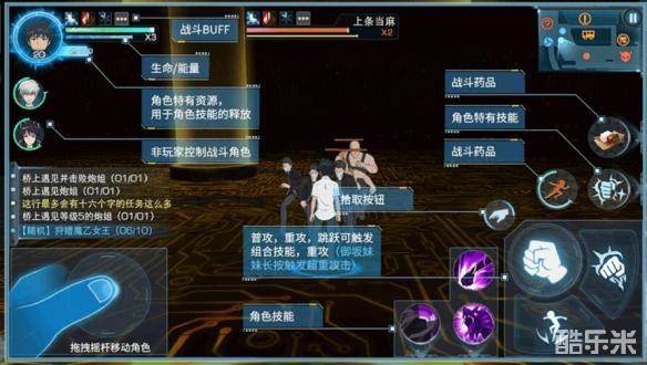 进入游戏之后就是一个简短的剧情&战斗教学,截图所示是游戏内置的战斗界面介绍。