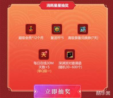 消耗通过等级奖励和开通所获得的星星可以免费抽奖赢深渊票等奖励。