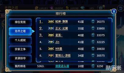 4、通关后系统即会送相应得分,在无尽之塔的排名上可以查看自己的得分,也是有奖励的哦。