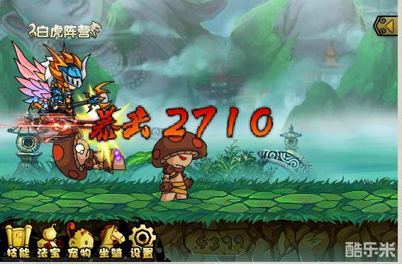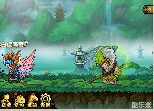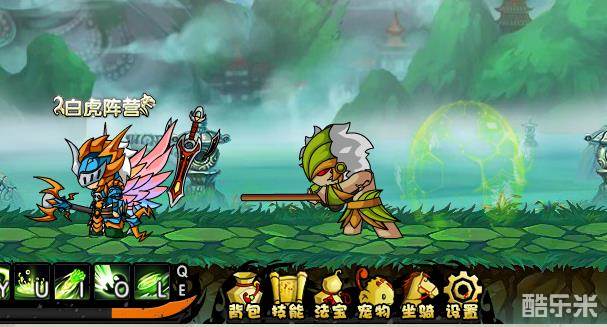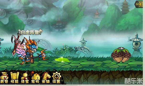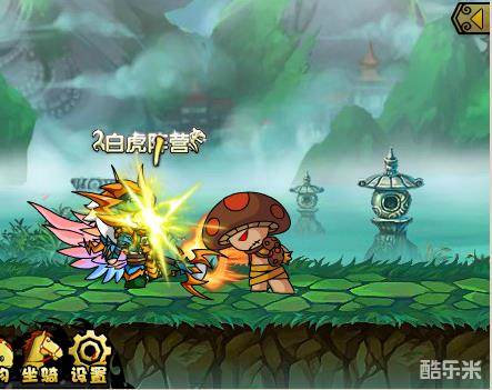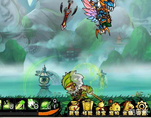 接下来,就是我们的松子怪,这个小怪的招数就是绿色飞镖,直线的,我们注意,基本范围应该是半个屏幕左右,我们要先解决掉蘑菇怪再来解决松子怪。
